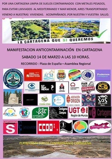 Por una Cartagena limpia de suelos contaminados con metales pesados. Sábado, 14 de marzo a las 10:00 h. Desde Plaza de España hasta Asamblea Regional.